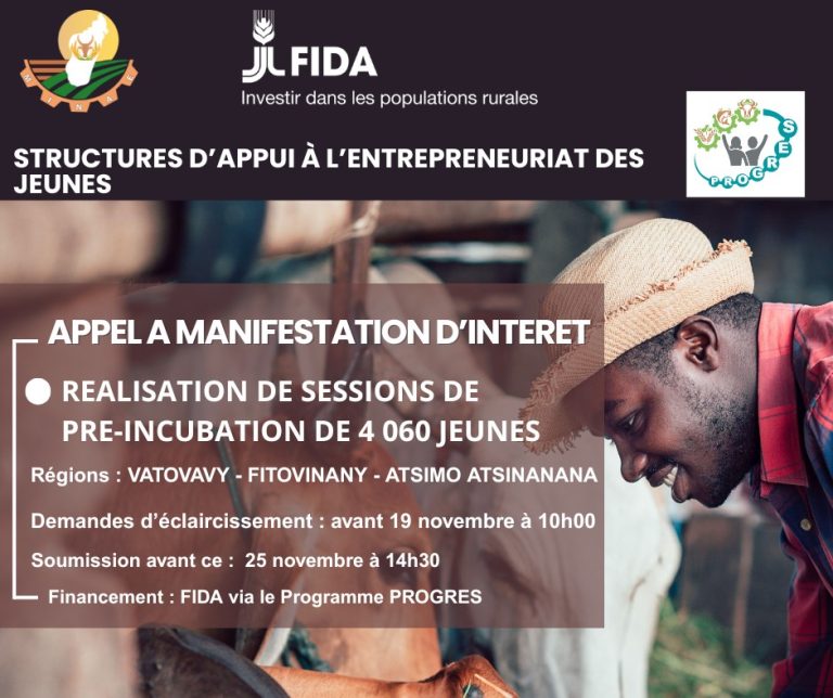 Appel d'offres, APPEL D'OFFRES PROGRES Pré-incubation des jeunes à Vatovavy, Fitovinany et Atsimo Atsinanana novembre 12, 2025 par CAPFIDA