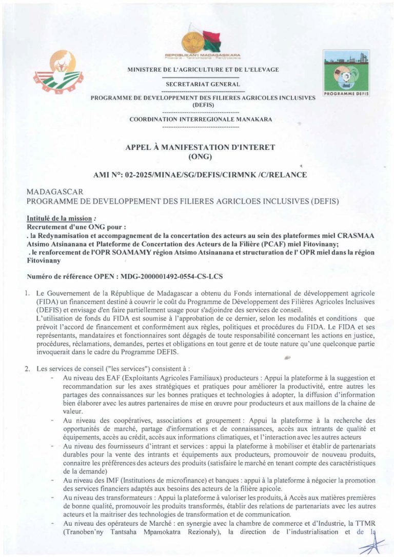Appel d'offres, APPEL D'OFFRES DEFIS Appel à Manifestation d’Intérêt : Appui à la Chaîne de Valeur Miel janvier 6, 2026 par CONTRIBUTEUR CAPFIDA