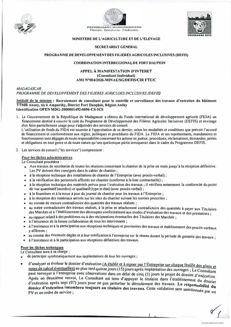 Appel d'offres, APPEL D'OFFRES DEFIS Recrutement d’un Bureau d’Études janvier 16, 2026 par CONTRIBUTEUR CAPFIDA