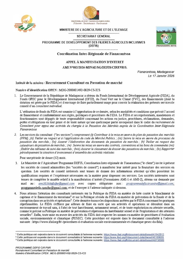 Appel d'offres, APPEL D'OFFRES DEFIS Recrutement d’un consultant(e) Junior – Appui à la Passation de Marchés janvier 16, 2026 par CONTRIBUTEUR CAPFIDA