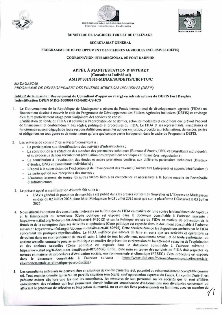 Appel d'offres, APPEL D'OFFRES DEFIS Consultant(e) d’appui au Chargé en Infrastructures janvier 16, 2026 par CONTRIBUTEUR CAPFIDA