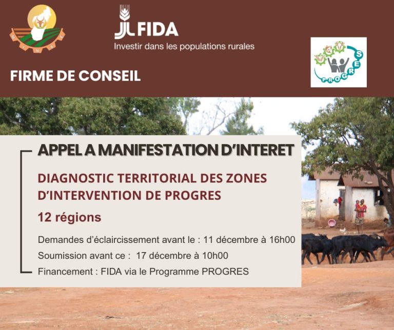 Appel d'offres, APPEL D'OFFRES PROGRES Recrutement d’une firme de conseil chargée de conduire le diagnostic territorial approfondi dans les régions d’intervention du Programme PROGRES décembre 9, 2025 par CONTRIBUTEUR CAPFIDA