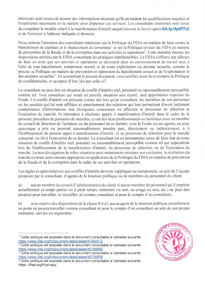 Le Programme de Renforcement de l’Entrepreneuriat Durable et de Soutien à l’Insertion Économique des Jeunes Ruraux (Programme PROGRES), mis en œuvre par le Ministère de l’Agriculture et de l’Elevage avec l’appui du #FIDA, lance un appel à proposition pour sélectionner des firmes spécialisées dans l’appui à l’entrepreneuriat des jeunes